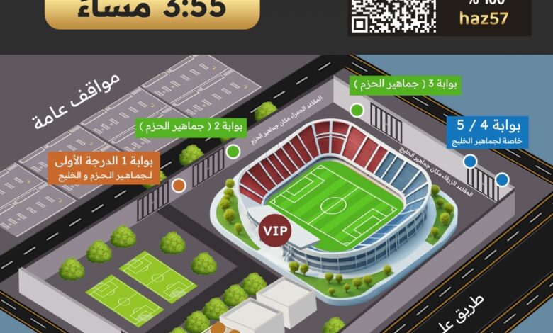 احجز تذكرتك الآن لمباراة الحزم والخليج وتعرف على مكانك المخصص في الملعب