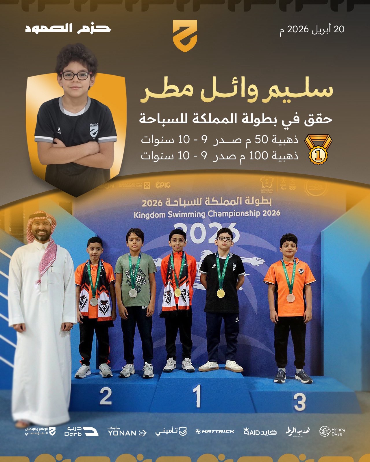 الحزم يحقق ذهبيتين في بطولة المملكة للسباحة للبراعم والناشئين 2026