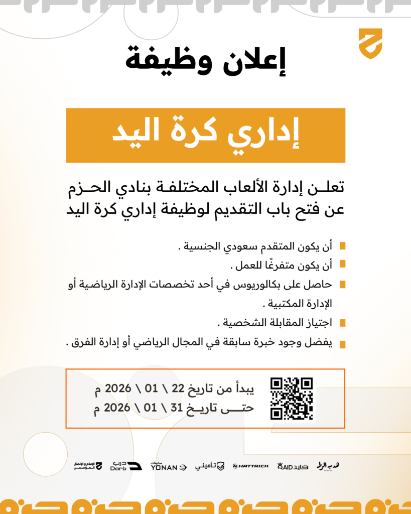 اعلان وظيفي نادري الحزم – وظيفة إداري كرة اليد