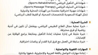أخصائي علاج طبيعي وتدليك تاريخ بداية التقديم من تاريخ 01 نوفمبر 2025 وينتهي بتاريخ 30 نوفمبر 2025